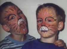 Hellloooo again. Painting faces is what I do the best. Some of my favorites are, butterflies, teddy bears, motorcycles, unicorns, helicopters, flowers, sharks, and special birthday hats. Special requests include spiderman, tiger, princess, and bunny. I use the finest hypo-alergenic face paints and "gentle" glitters. (That's my boy floating around and my other son is next to the shark)